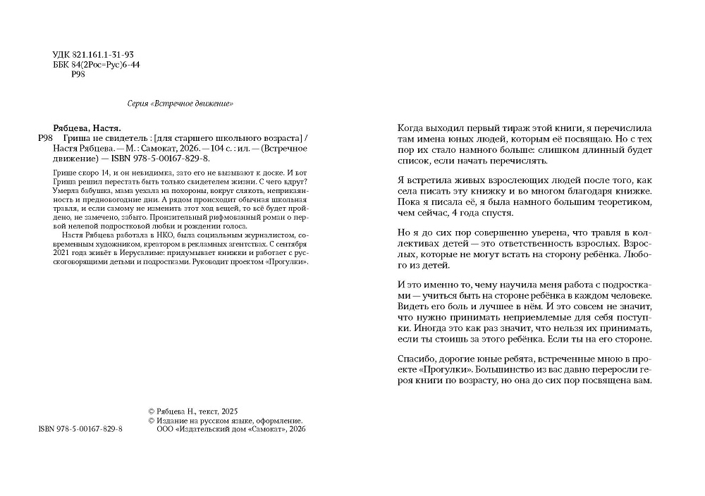 Это рифмованный роман от лица 14-летнего подростка, который больше не хочет быть свидетелем, а становится главным действующим персонажем своей жизни;