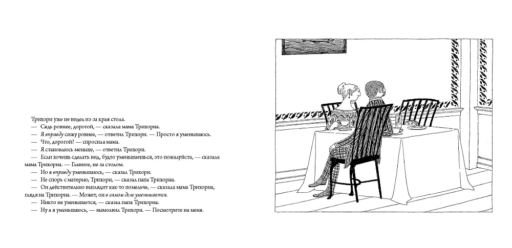 С Трихорном происходило что-то очень странное. Первым делом он заметил, что не может достать до полки у себя в чулане, хотя раньше ему это всегда удавалось: на этой полке он держал свои шоколадные батончики и жевательную резинку. Потом он заметил, что его одежда становится всё больше и больше. Тяжело в это поверить, но, кажется, он… усыхает. Да, все дети растут, но только не Трихорн… Он же всё меньше с каждым днём. Ещё чуть-чуть, и Трихорн совсем исчезнет…