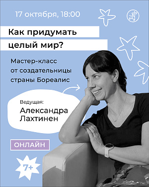 На мастер-классе с писательницей Александрой Лахтинен, автором книг серии «В стране Бореалис», участники заглянут на творческую «кухню» писателя и попробуют сами создать основы собственного мира — с героями, правилами и атмосферой.