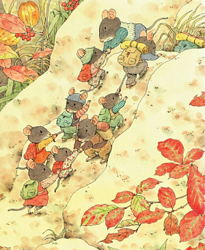 послушаем в исполнении ведущей отрывок из книги «14 лесных мышей. Пикник»;